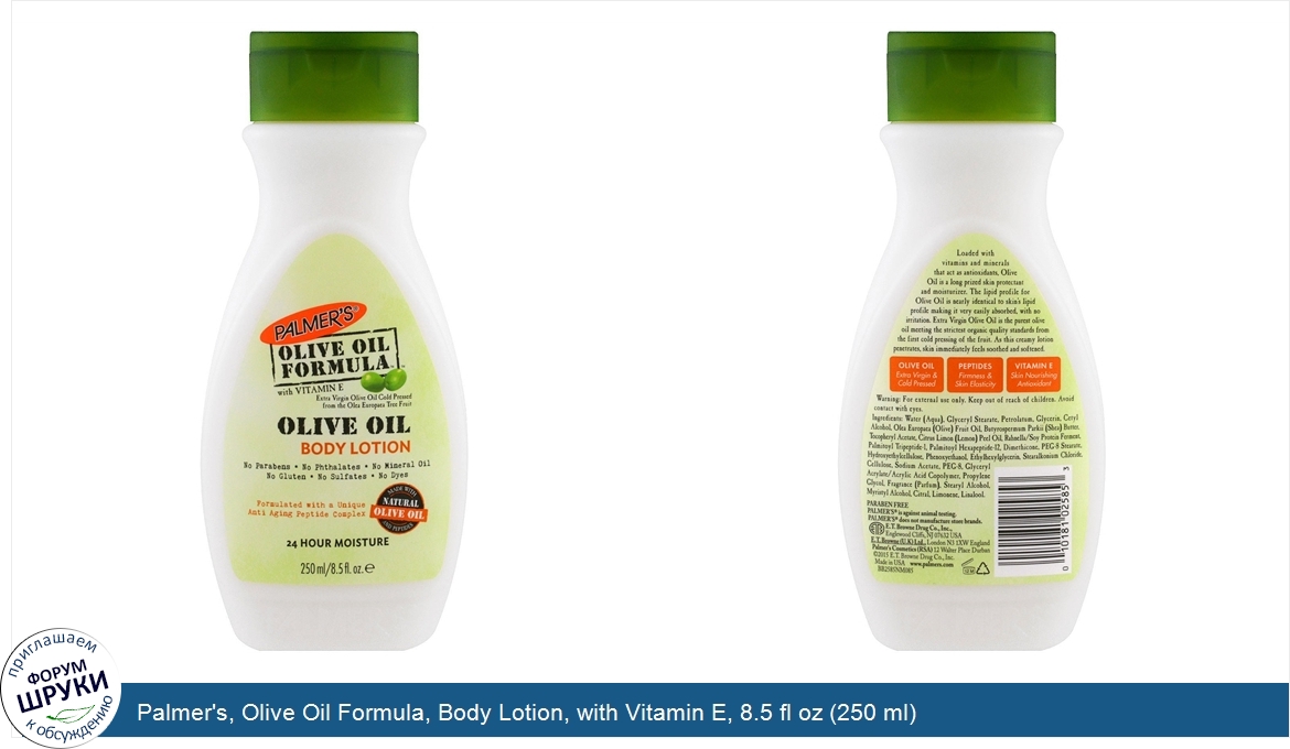 Друзья, если у вас есть отзыв/дополнение/комментарий/вопрос относительно Palmer's, Olive Oil Formula, Body Lotion, with Vitamin E, 8.5 fl oz (250 ml) - напишите его ответом в эту тему (это будет полезно всему сообществу в целом и вам в отдельности).