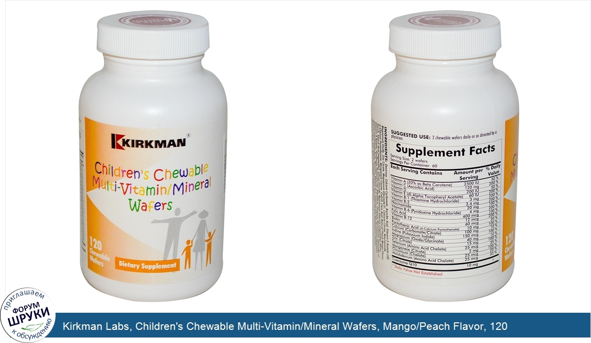Kirkman Labs, Children's Chewable Multi-Vitamin/Mineral Wafers, Mango/Peach Flavor, 120 Chewable Wafers