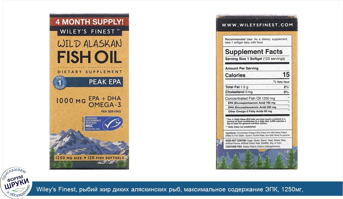 Друзья, если у вас есть отзыв/дополнение/комментарий/вопрос относительно Wiley's Finest, рыбий жир диких аляскинских рыб, максимальное содержание ЭПК, 1250мг, 120рыбных капсул - напишите его ответом в эту тему (это будет полезно всему сообществу в целом и вам в отдельности).