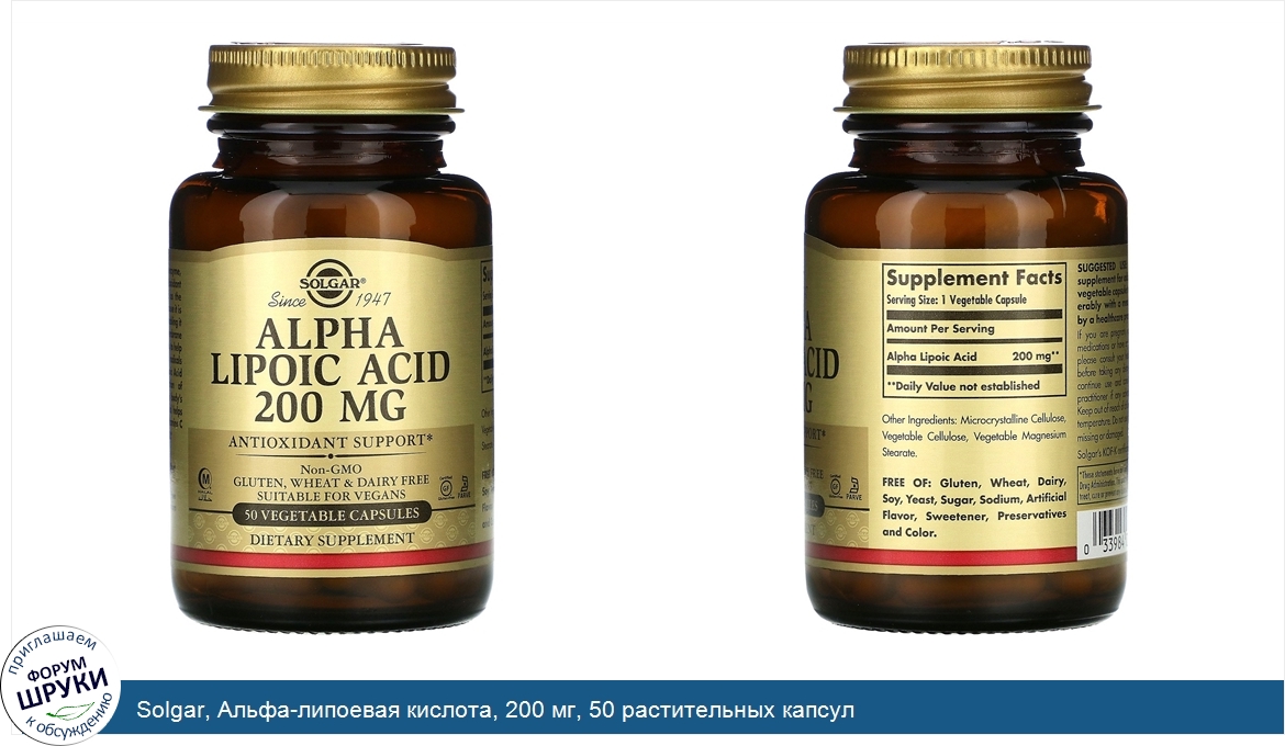 Друзья, если у вас есть отзыв/дополнение/комментарий/вопрос относительно Solgar, Альфа-липоевая кислота, 200 мг, 50 растительных капсул - напишите его ответом в эту тему (это будет полезно всему сообществу в целом и вам в отдельности).