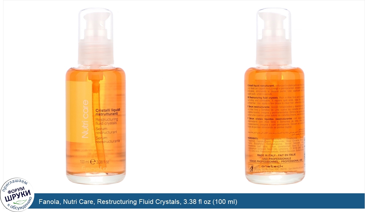 Fanola, Nutri Care, Restructuring Fluid Crystals, 3.38 fl oz (100 ml)