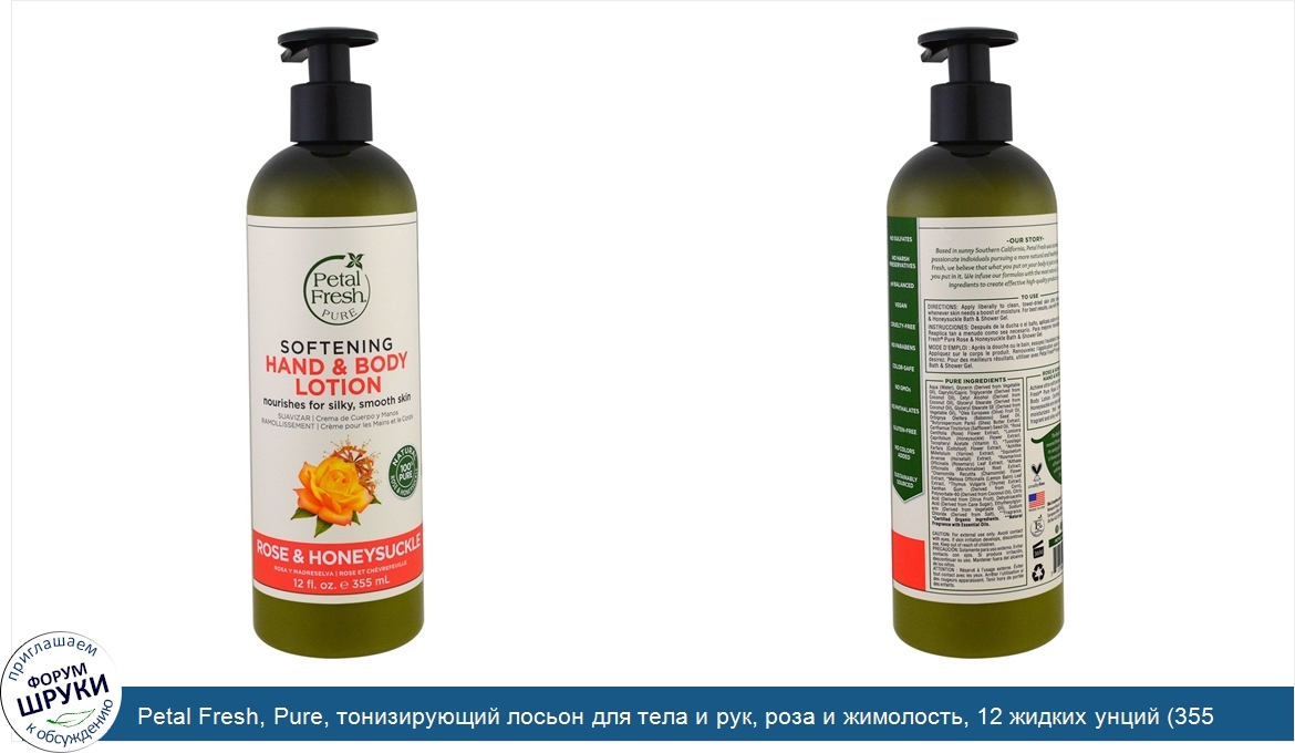 Petal Fresh, Pure, тонизирующий лосьон для тела и рук, роза и жимолость, 12 жидких унций (355 мл)