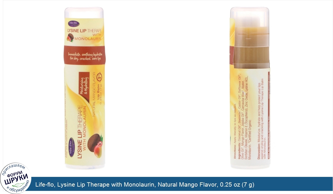Life-flo, Lysine Lip Therape with Monolaurin, Natural Mango Flavor, 0.25 oz (7 g)