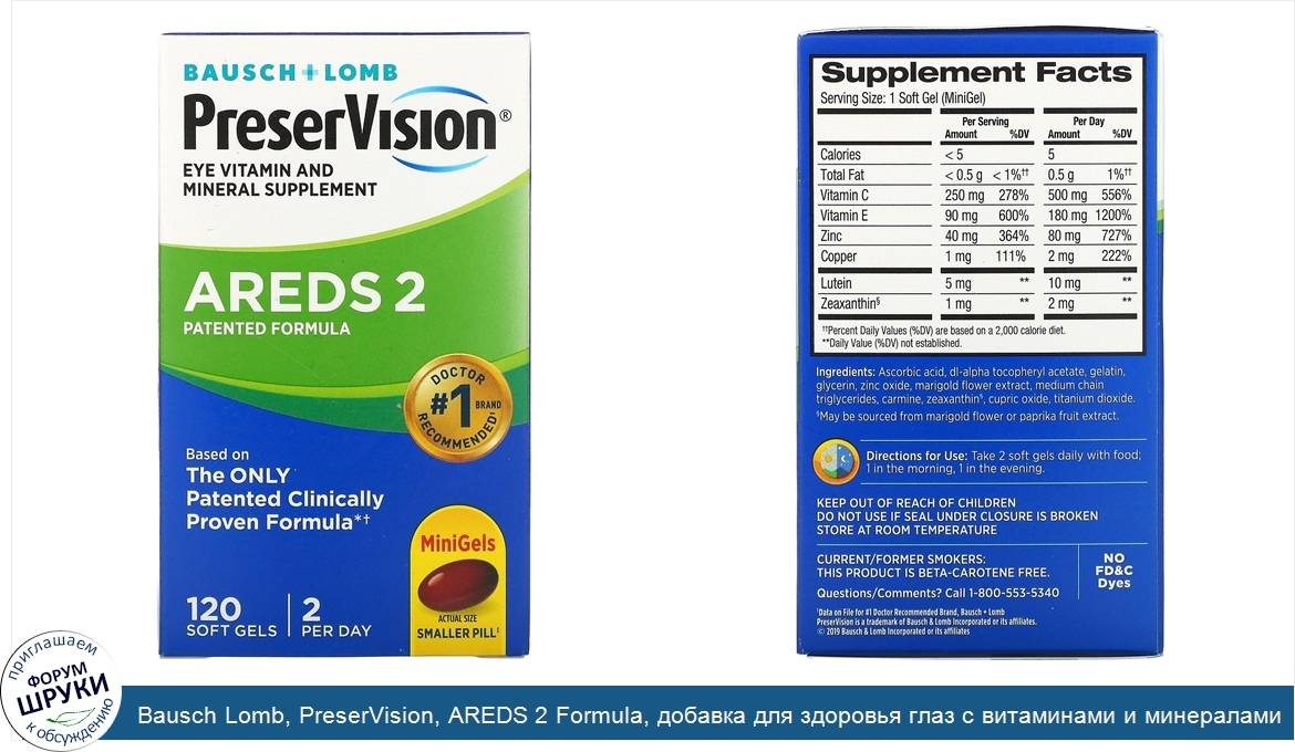 [DESCRIPT]Patented Formula. #1 Doctor Recommended Brand¹. Based on The Only Patented Clinically Proven Formula. 2 Per Day. MiniGels Smaller Pill. ¹Data on File for #1 Doctor Recommended Brand, Bausch + Lomb. ‡versus original PreserVision®. AREDS 2 Soft Gel[/DESCRIPT]... (описание дополняется)