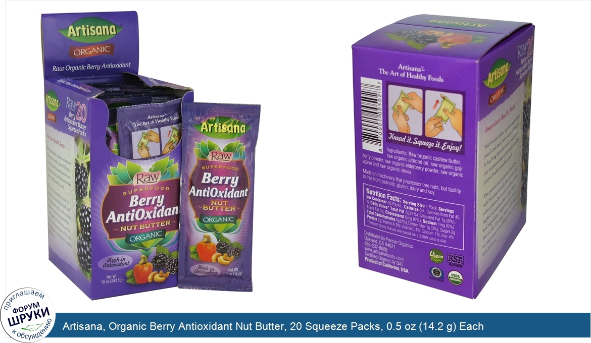 Artisana, Organic Berry Antioxidant Nut Butter, 20 Squeeze Packs, 0.5 oz (14.2 g) Each