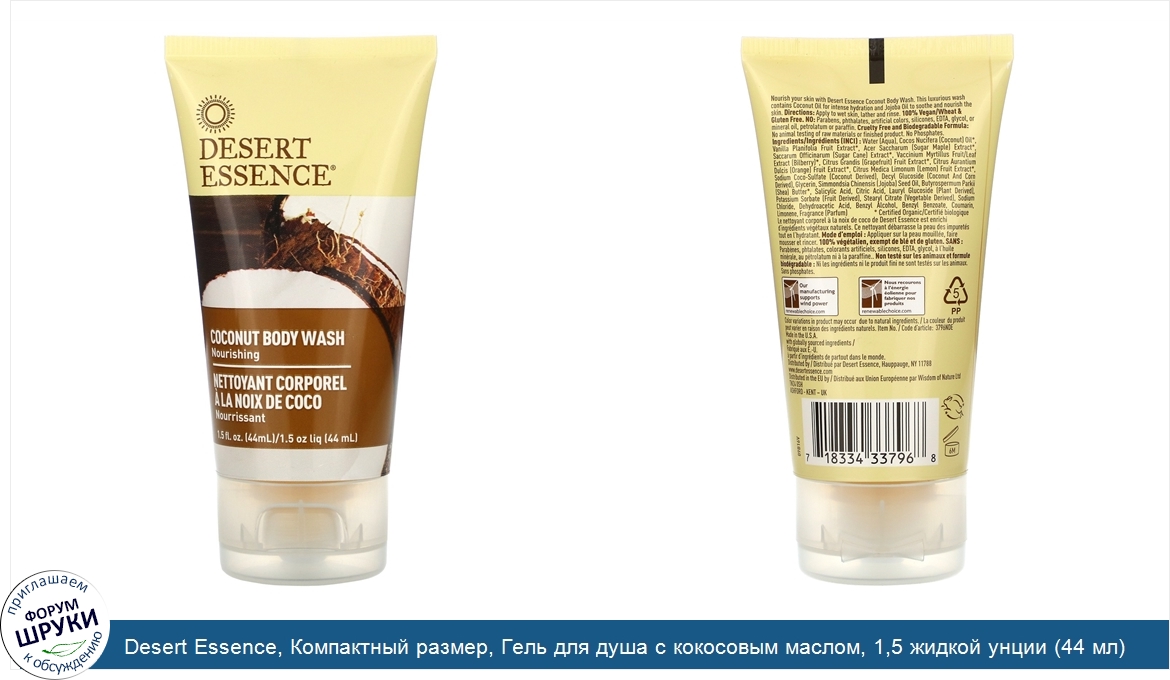 Друзья, если у вас есть отзыв/дополнение/комментарий/вопрос относительно Desert Essence, Компактный размер, Гель для душа с кокосовым маслом, 1,5 жидкой унции (44 мл) - напишите его ответом в эту тему (это будет полезно всему сообществу в целом и вам в отдельности).