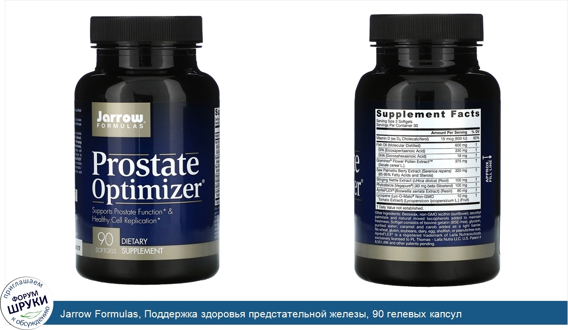 [DESCRIPT]Supports Prostate Function Healthy Cell Replication. Dietary Supplement. Prostate Optimizer® combines traditional and cutting edge nutrients associated with prostate health. Saw Palmetto Berry Extract, Graminex® Pollen Extract™ (Secale cereal L.) and Stinging Nettle Extract support bladder function and urinary flow. Phytosterols, Vitamin D3 and Lyc-O-Mato® Lycopene aid healthy prostate cell replication. The omega-3 fatty acids EPA and DHA contribute to the synthesis of healthful prostaglandins. Additionally, AprèsFLEX® Boswellia serrata extract supports healthy cell division and exhibits greater than 50% better bioavailability than regular boswellia extracts. The combination of the above actives provides comprehensive and balanced support for the prostate.[/DESCRIPT]... (описание дополняется)