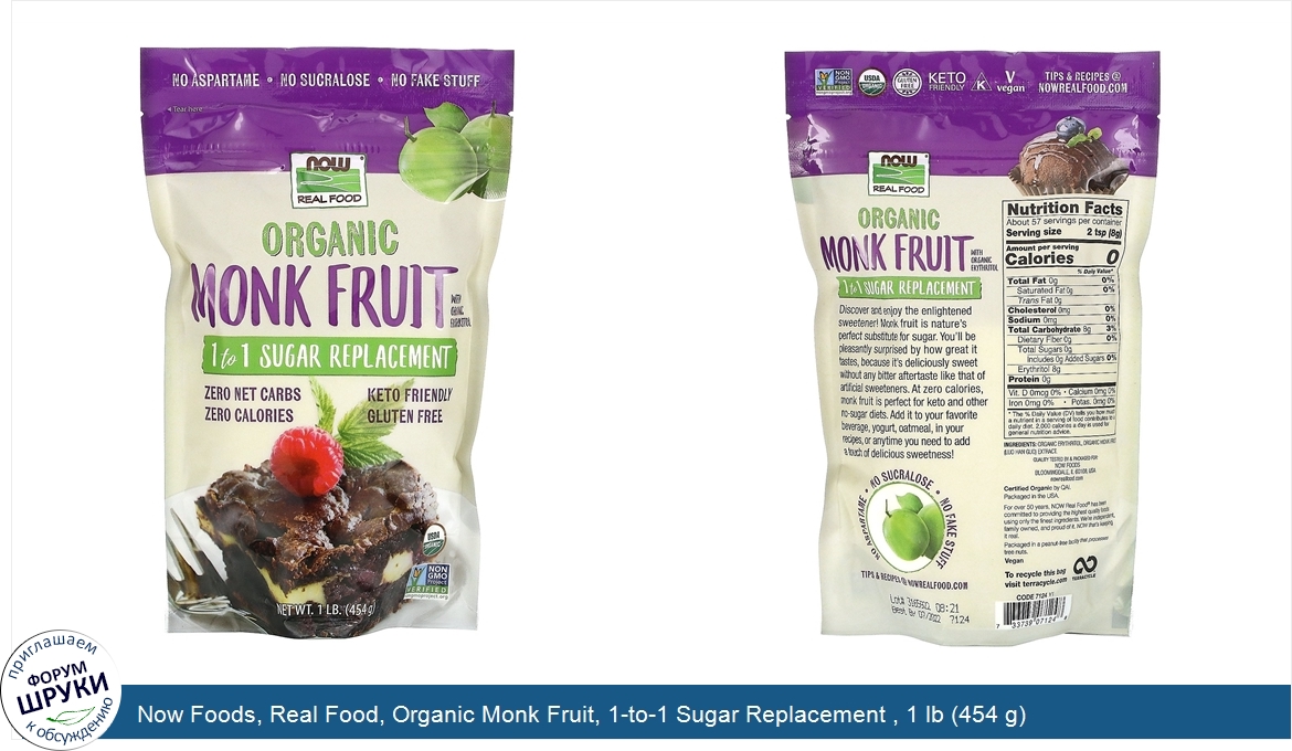 Друзья, если у вас есть отзыв/дополнение/комментарий/вопрос относительно Now Foods, Real Food, Organic Monk Fruit, 1-to-1 Sugar Replacement , 1 lb (454 g) - напишите его ответом в эту тему (это будет полезно всему сообществу в целом и вам в отдельности).