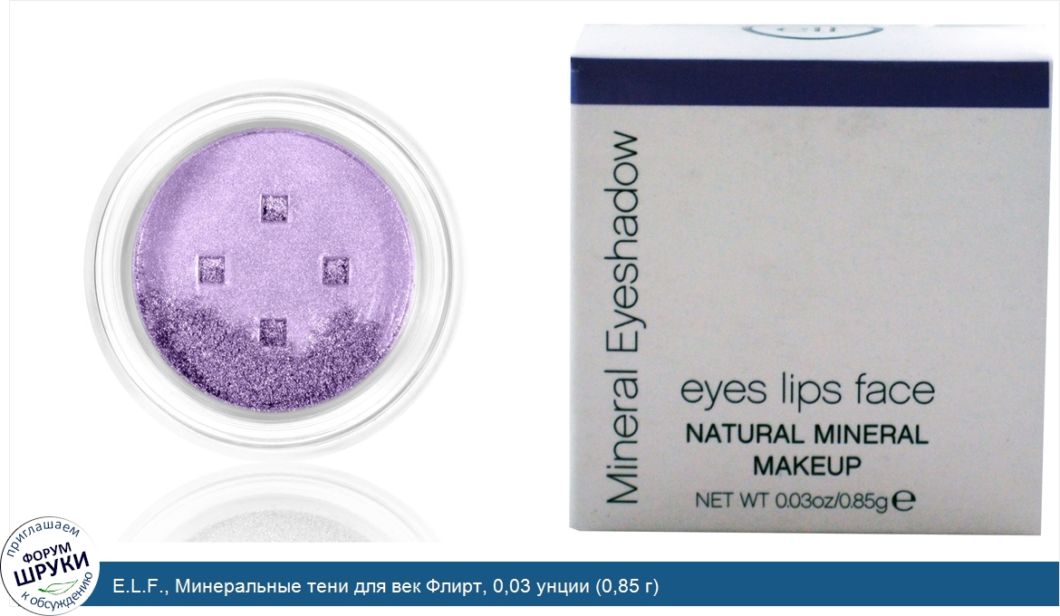 Друзья, если у вас есть отзыв/дополнение/комментарий/вопрос относительно E.L.F., Минеральные тени для век Флирт, 0,03 унции (0,85 г) - напишите его ответом в эту тему (это будет полезно всему сообществу в целом и вам в отдельности).