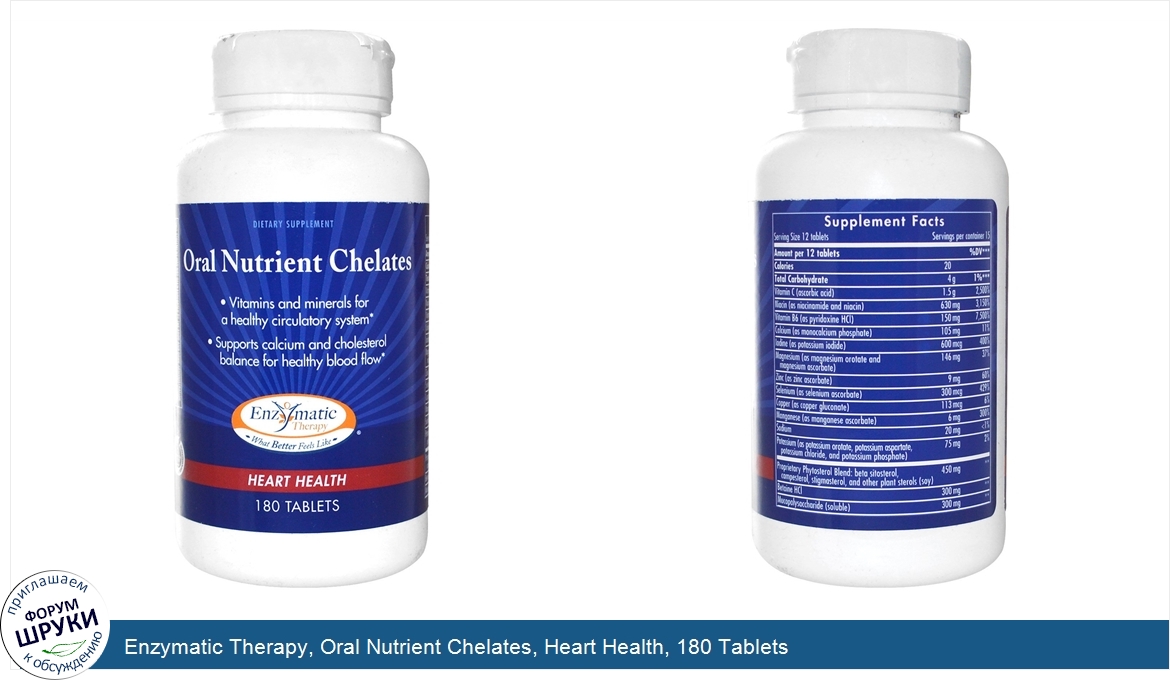 Друзья, если у вас есть отзыв/дополнение/комментарий/вопрос относительно Enzymatic Therapy, Oral Nutrient Chelates, Heart Health, 180 Tablets - напишите его ответом в эту тему (это будет полезно всему сообществу в целом и вам в отдельности).
