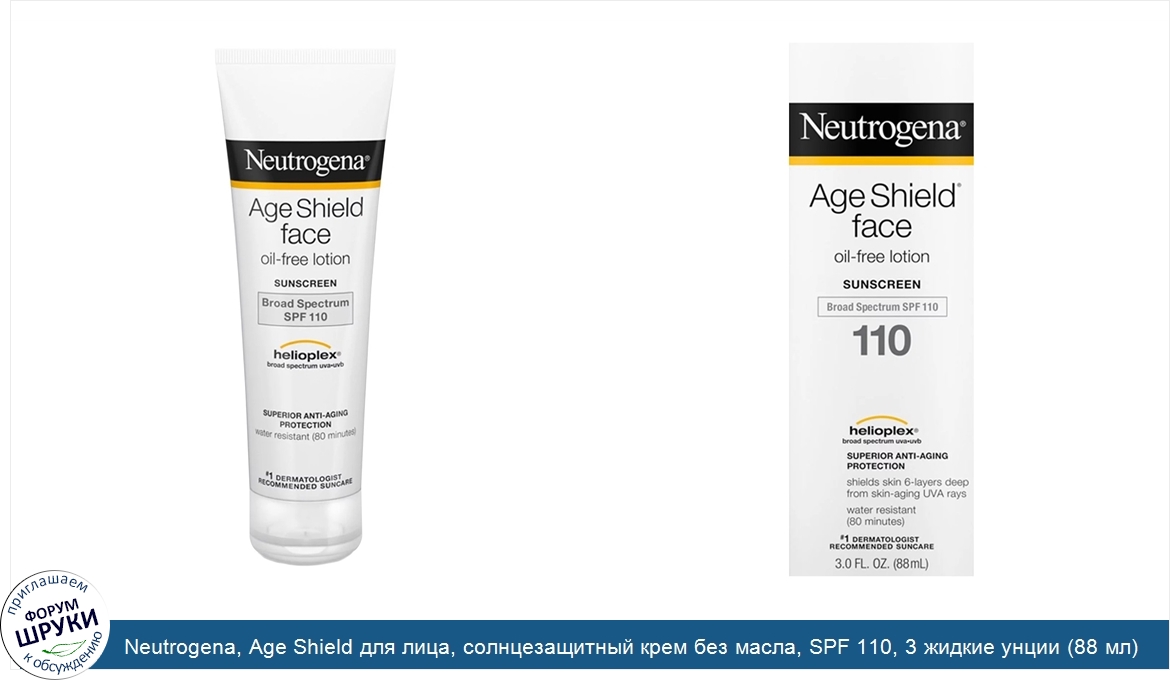 ru Neutrogena, Age Shield для лица, солнцезащитный крем без масла, SPF 110, 3 жидкие унции (88 мл)