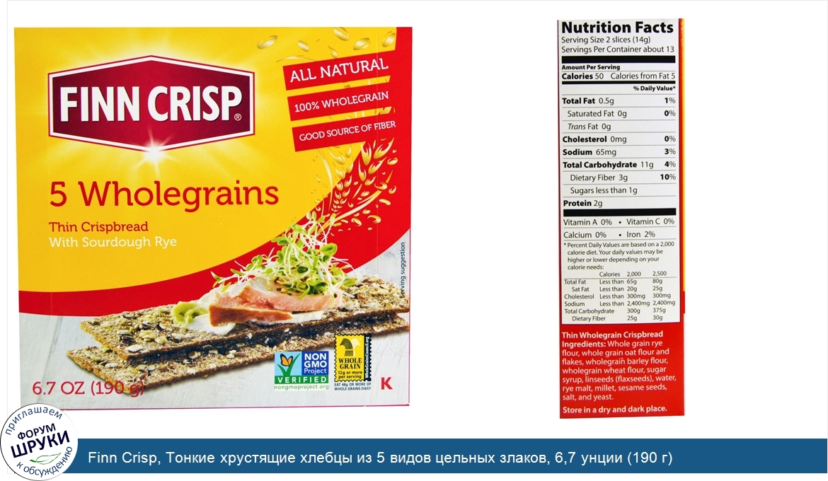 Друзья, если у вас есть отзыв/дополнение/комментарий/вопрос относительно Finn Crisp, Тонкие хрустящие хлебцы из 5 видов цельных злаков, 6,7 унции (190 г) - напишите его ответом в эту тему (это будет полезно всему сообществу в целом и вам в отдельности).
