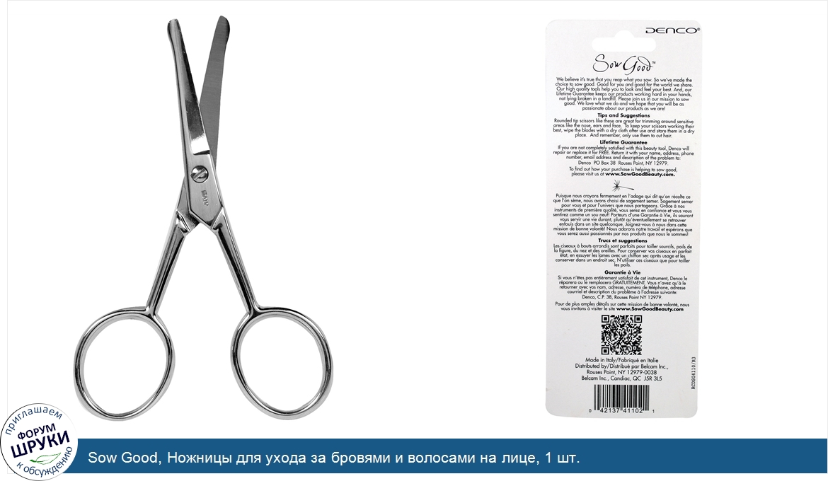 [DESCRIPT]We believe it’s true that you reap what you sow. So we’ve made the choice to sow good. Good for you and good for the world we share. Our high quality tools help you look and feel your best. Please join us in our mission to sow good. We love what we do and we hope that you will be as passionate about our products as we are! If you have stray or unruly eyebrow, nose, ear or other facial hair, and you're a bit nervous about using sharp tools around your face, these scissors are a great option.[/DESCRIPT]... (описание дополняется)