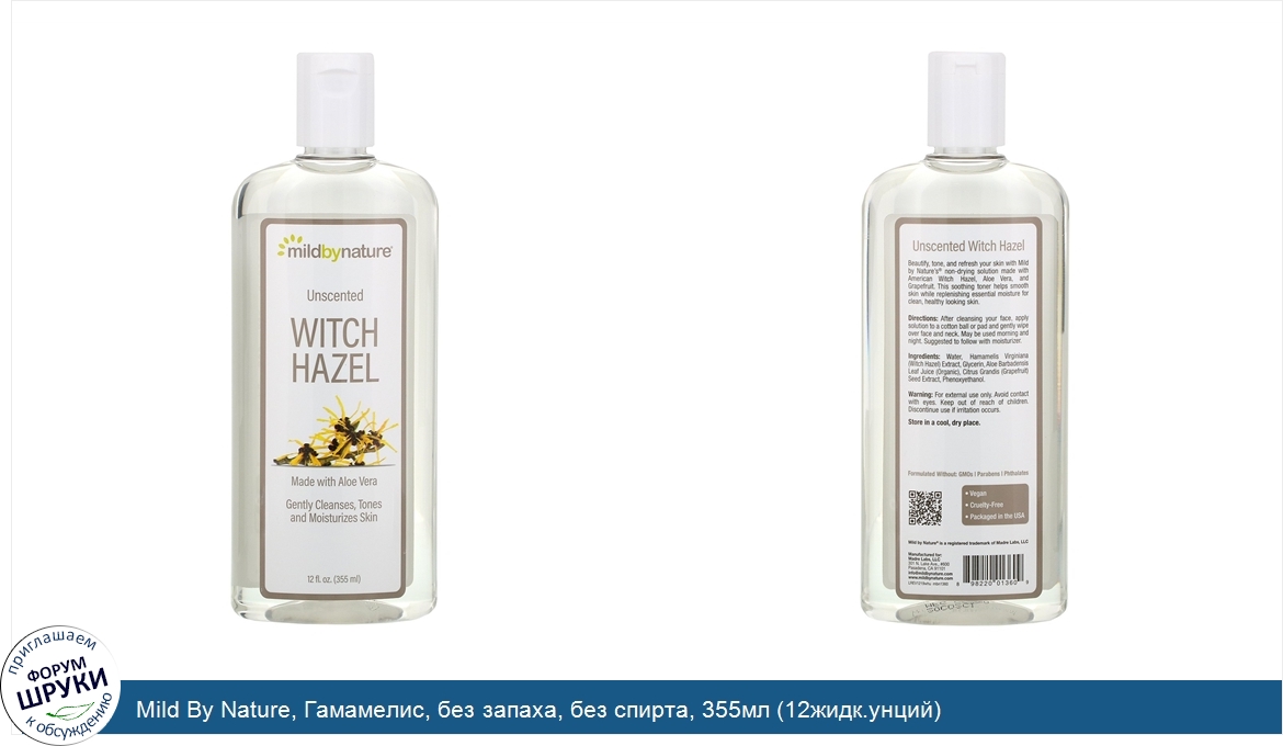Mild By Nature, Гамамелис, без запаха, без спирта, 355мл (12жидк.унций)