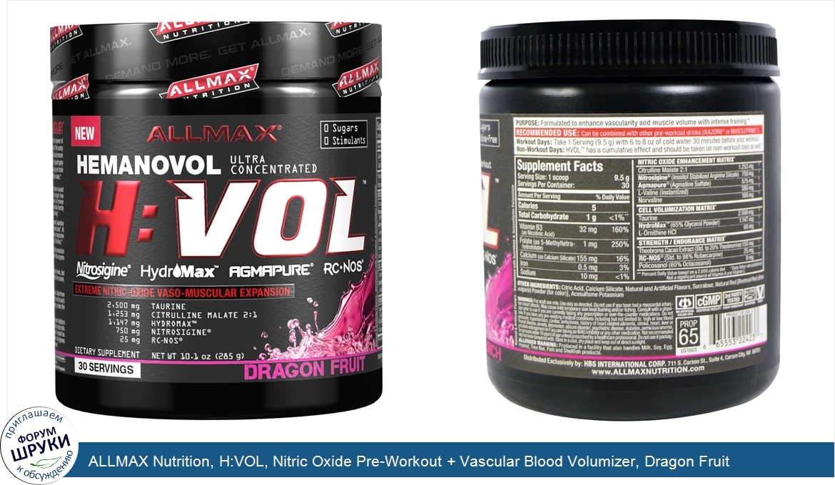Друзья, если у вас есть отзыв/дополнение/комментарий/вопрос относительно ALLMAX Nutrition, H:VOL, Nitric Oxide Pre-Workout + Vascular Blood Volumizer, Dragon Fruit Punch, 10.1 oz (285 g) - напишите его ответом в эту тему (это будет полезно всему сообществу в целом и вам в отдельности).