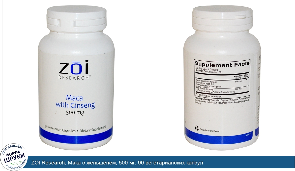 ZOI Research, Мака с женьшенем, 500 мг, 90 вегетарианских капсул