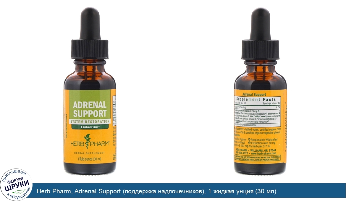 Друзья, если у вас есть отзыв/дополнение/комментарий/вопрос относительно Herb Pharm, Adrenal Support (поддержка надпочечников), 1 жидкая унция (30 мл) - напишите его ответом в эту тему (это будет полезно всему сообществу в целом и вам в отдельности).