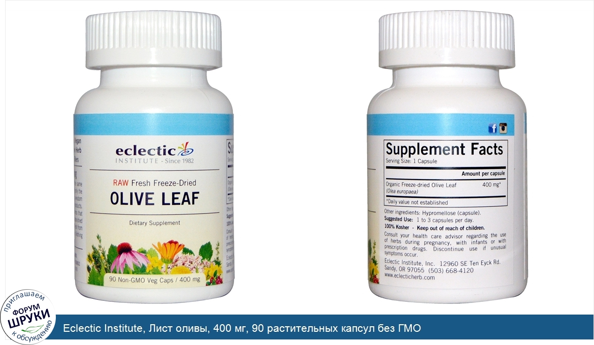 Eclectic Institute, Лист оливы, 400 мг, 90 растительных капсул без ГМО