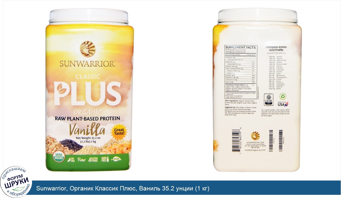 Друзья, если у вас есть отзыв/дополнение/комментарий/вопрос относительно Sunwarrior, Органик Классик Плюс, Ваниль 35.2 унции (1 кг) - напишите его ответом в эту тему (это будет полезно всему сообществу в целом и вам в отдельности).