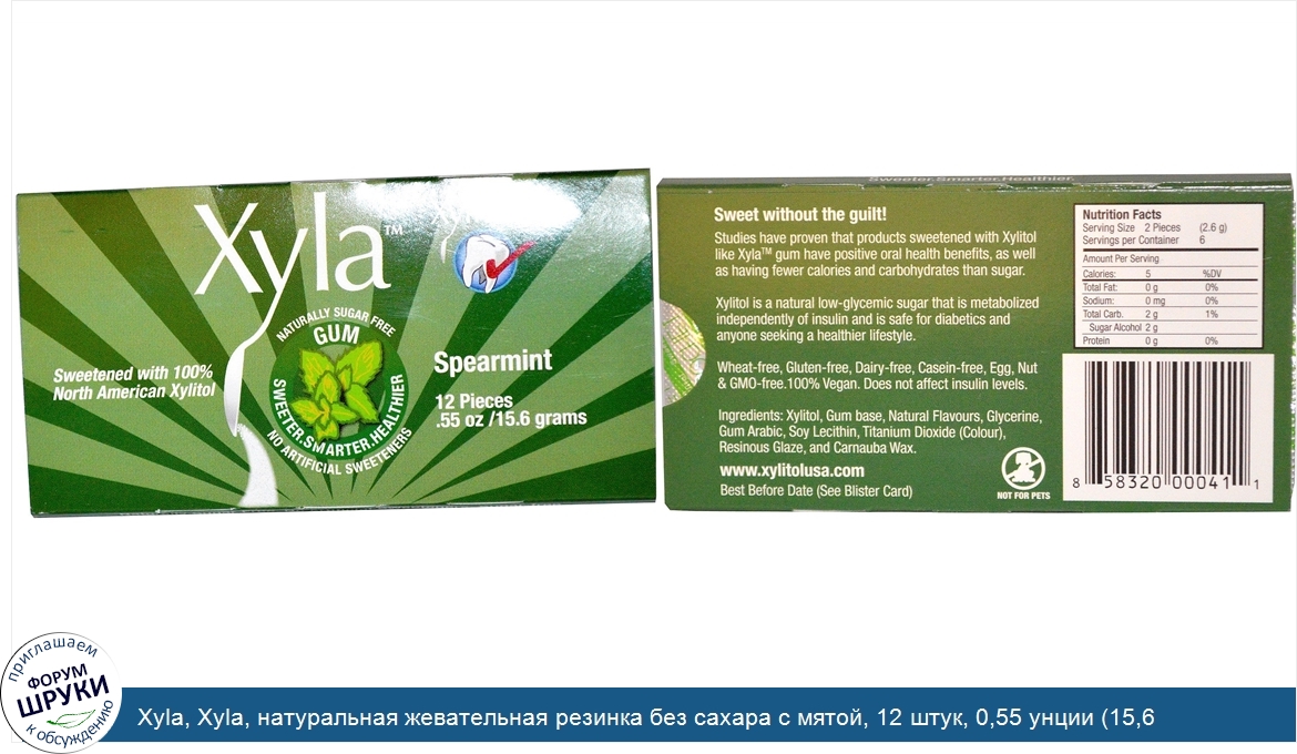 Друзья, если у вас есть отзыв/дополнение/комментарий/вопрос относительно Xyla, Xyla, натуральная жевательная резинка без сахара с мятой, 12 штук, 0,55 унции (15,6 г) - напишите его ответом в эту тему (это будет полезно всему сообществу в целом и вам в отдельности).