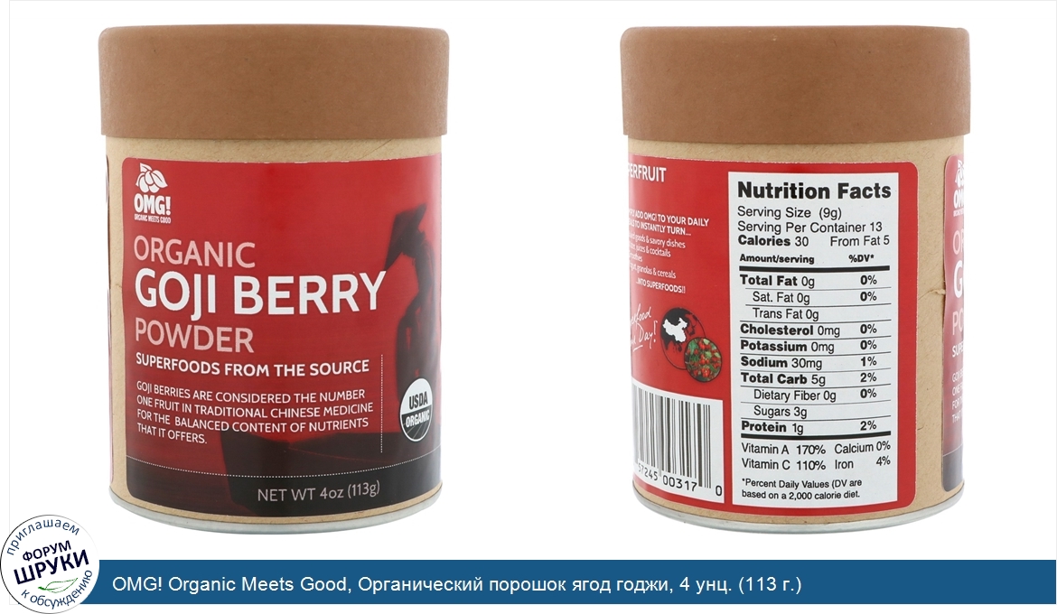 Друзья, если у вас есть отзыв/дополнение/комментарий/вопрос относительно OMG! Organic Meets Good, Органический порошок ягод годжи, 4 унц. (113 г.) - напишите его ответом в эту тему (это будет полезно всему сообществу в целом и вам в отдельности).