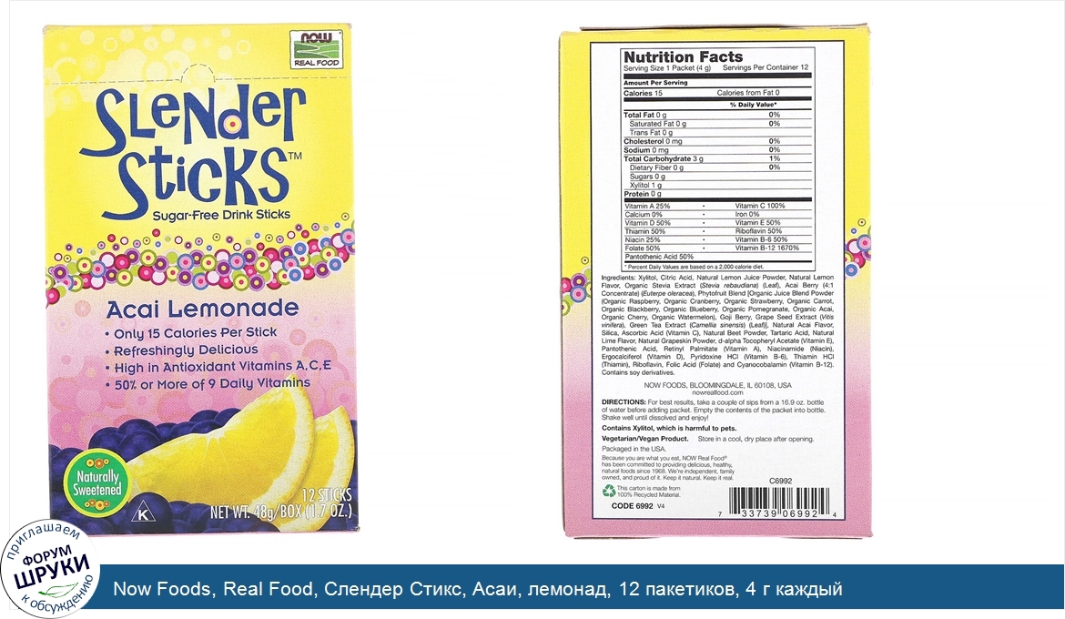 Друзья, если у вас есть отзыв/дополнение/комментарий/вопрос относительно Now Foods, Real Food, Слендер Стикс, Асаи, лемонад, 12 пакетиков, 4 г каждый - напишите его ответом в эту тему (это будет полезно всему сообществу в целом и вам в отдельности).