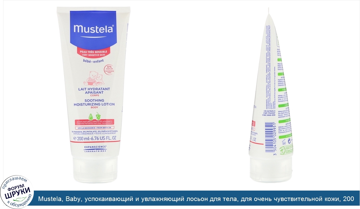 Друзья, если у вас есть отзыв/дополнение/комментарий/вопрос относительно Mustela, Baby, успокаивающий и увлажняющий лосьон для тела, для очень чувствительной кожи, 200 мл - напишите его ответом в эту тему (это будет полезно всему сообществу в целом и вам в отдельности).