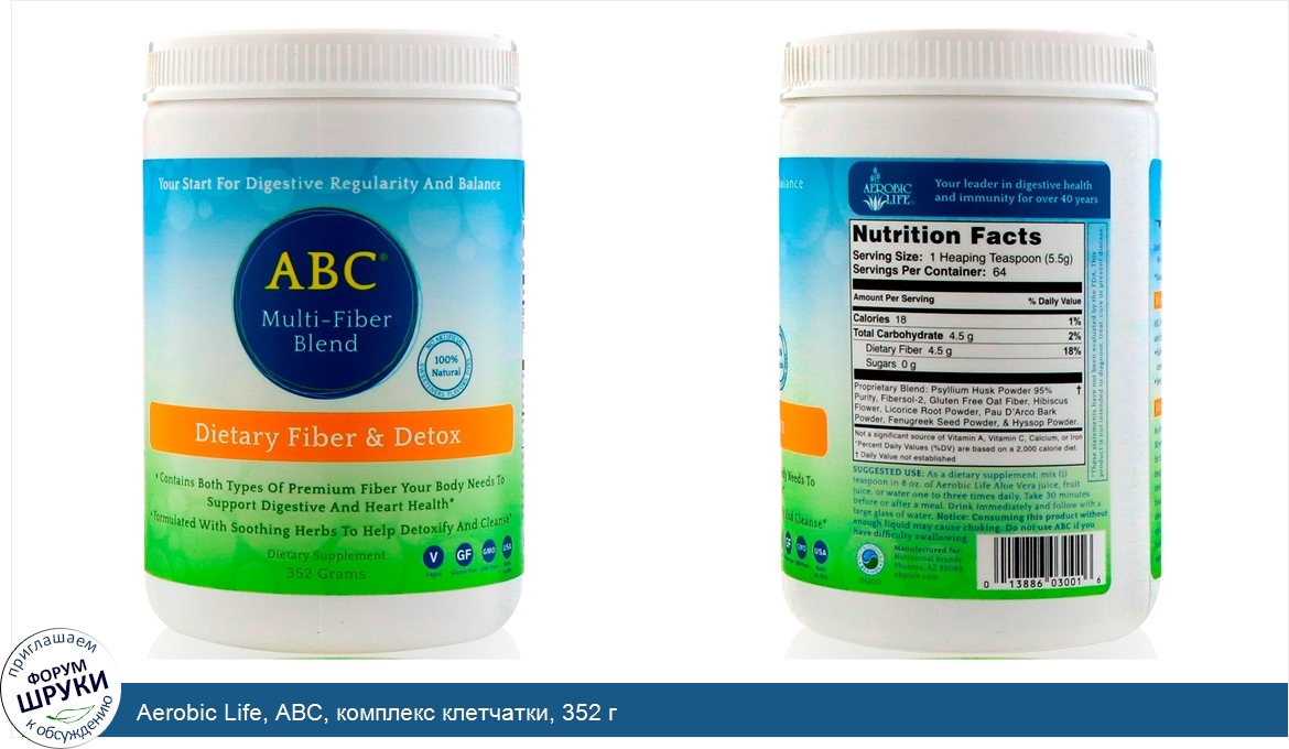 [DESCRIPT]Путь к регулярному и сбалансированному пищеварению. 100% натуральный продукт — без искусственных подсластителей, ароматизаторов, красящих веществ. Пищевая клетчатка и детокс. Содержит оба типа высококлассной клетчатки, которая необходима для поддержки пищеварения и здоровья сердца. Содержит травы, обладающие смягчающим действием для вывода токсинов и очищения. Пищевая добавка. Веганский продукт. Не содержит глютена. Не содержит ГМО. Лучший продукт для нормализации пищеварения и иммунитета в возрасте от 40 лет. Бренды пищевых добавок. Первый шаг к регулярному и сбалансированному пищеварению. Растворять 1 ч.л. ABC в 8 унц. воды.**. Запить 8 унц. воды. 1-3x — до 3-х раз в день. +-30 мин/ прием пищи. Кому рекомендован препарат ABC? ABC (раньше Aerobic Bulk Cleanse) будет полезен всем, кто принимает клетчатку для улучшения пищеварения. Вы:. сталкиваетесь с эпизодической констипацией, ленивым пищеварением или обычными пищеварительными проблемами. нуждаетесь в качественной клетчатке для очищения и вывода токсинов. Зачем использовать ABC для очищения? Высококлассные препараты клетчатки + трав для детоксикации. Как лидирующий производитель пищевой клетчатки в течение 30 лет, компания ABC всегда гордится эффективностью и качеством своих ингредиентов. Эта формула была создана с холистическим подходом к пищевой клетчатке, в качестве нерастворимой клетчатки используется подорожник, полезной для сердца растворимой клетчатки — овес; мягко действующие травы добавлены для эффекта детоксикации и исцеления. Эта специальная смесь может стать частью ежедневного ухода за собой, поможет достичь освежающего и успокаивающего ощущения регулярного пищеварения. **Для ускорения очищения можно пить сок алоэ Aerobic Life или другой сок по вкусу.[/DESCRIPT]... (описание дополняется)