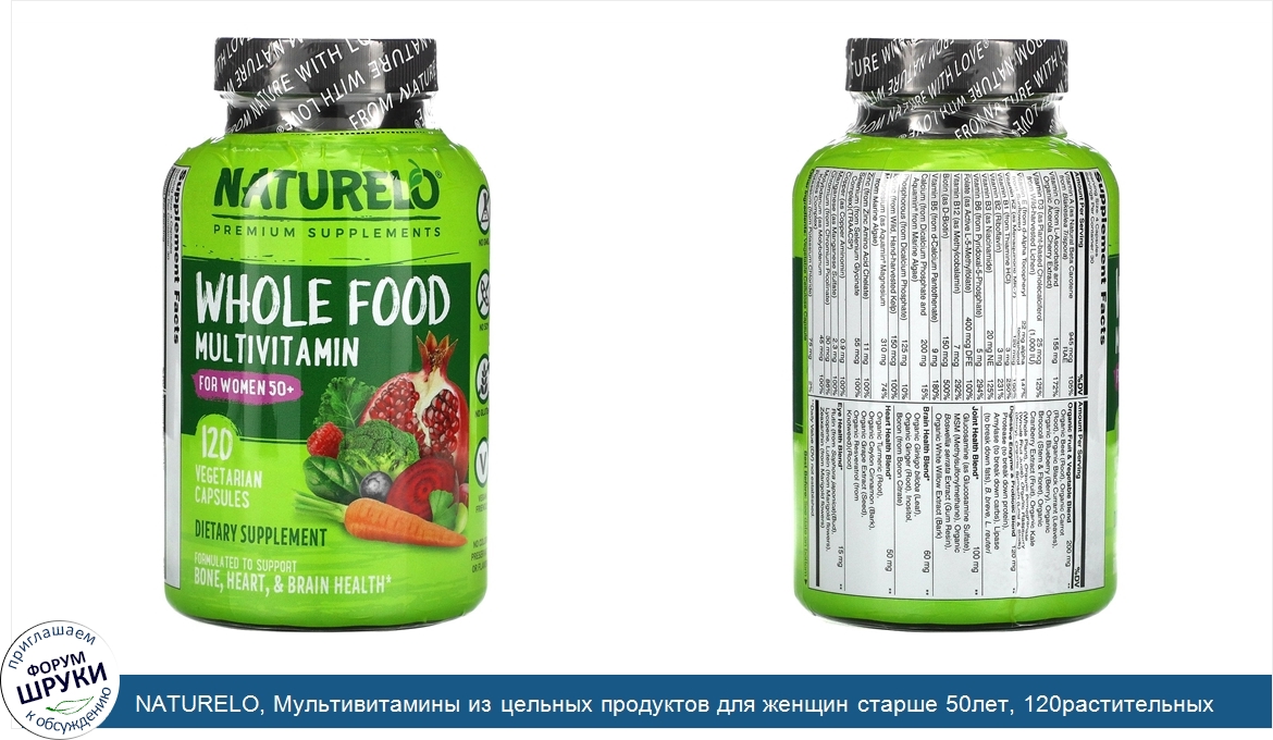 ru NATURELO, Мультивитамины из цельных продуктов для женщин старше 50лет, 120растительных капсул