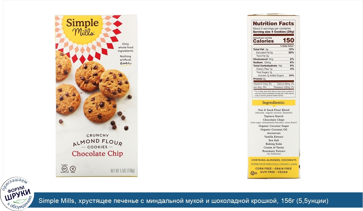 Друзья, если у вас есть отзыв/дополнение/комментарий/вопрос относительно Simple Mills, хрустящее печенье с миндальной мукой и шоколадной крошкой, 156г (5,5унции) - напишите его ответом в эту тему (это будет полезно всему сообществу в целом и вам в отдельности).