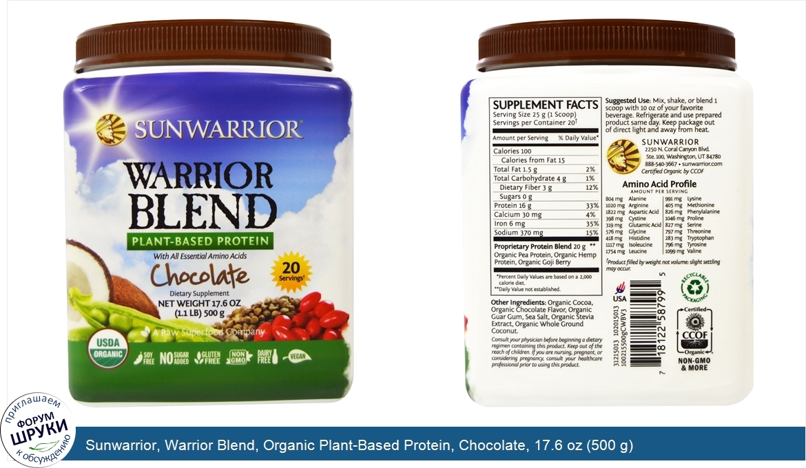Друзья, если у вас есть отзыв/дополнение/комментарий/вопрос относительно Sunwarrior, Warrior Blend, Organic Plant-Based Protein, Chocolate, 17.6 oz (500 g) - напишите его ответом в эту тему (это будет полезно всему сообществу в целом и вам в отдельности).