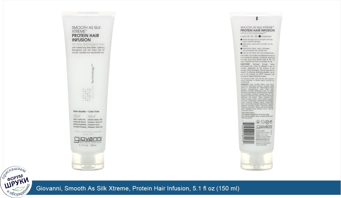 Друзья, если у вас есть отзыв/дополнение/комментарий/вопрос относительно Giovanni, Smooth As Silk Xtreme, Protein Hair Infusion, 5.1 fl oz (150 ml) - напишите его ответом в эту тему (это будет полезно всему сообществу в целом и вам в отдельности).