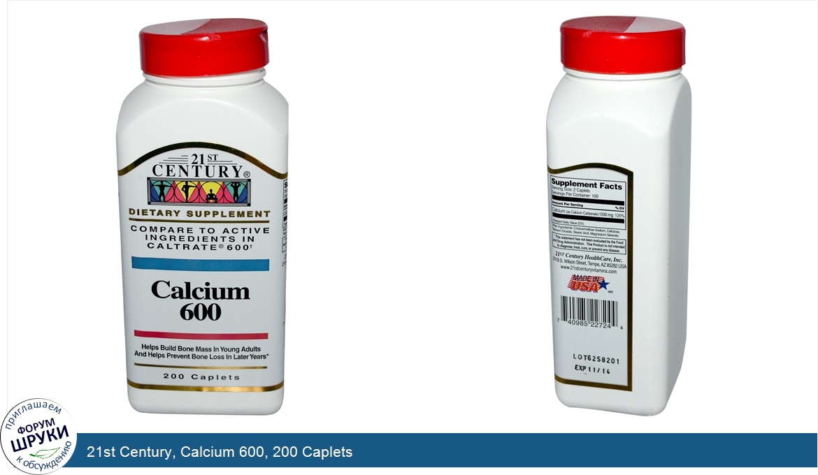 Друзья, если у вас есть отзыв/дополнение/комментарий/вопрос относительно 21st Century, Calcium 600, 200 Caplets - напишите его ответом в эту тему (это будет полезно всему сообществу в целом и вам в отдельности).