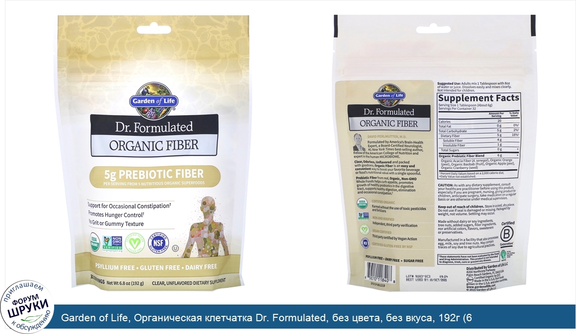 Друзья, если у вас есть отзыв/дополнение/комментарий/вопрос относительно Garden of Life, Органическая клетчатка Dr. Formulated, без цвета, без вкуса, 192г (6,8унций) - напишите его ответом в эту тему (это будет полезно всему сообществу в целом и вам в отдельности).