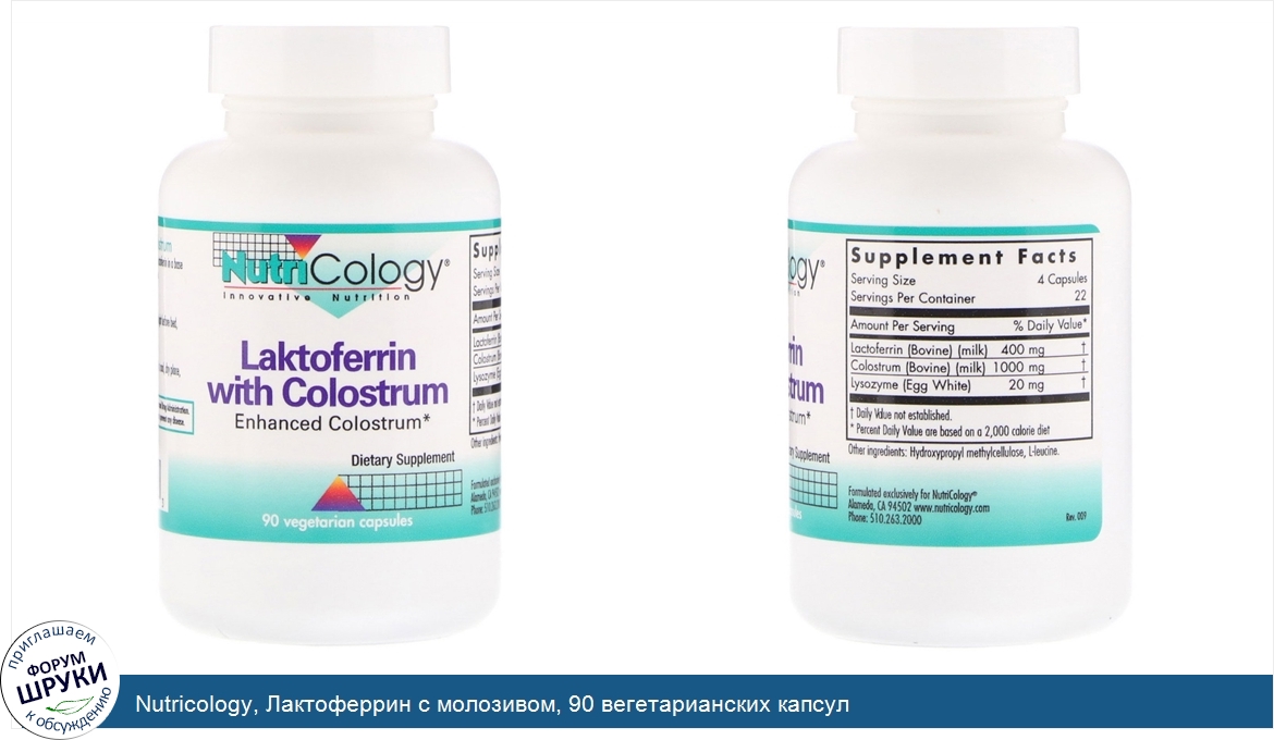Друзья, если у вас есть отзыв/дополнение/комментарий/вопрос относительно Nutricology, Лактоферрин с молозивом, 90 вегетарианских капсул - напишите его ответом в эту тему (это будет полезно всему сообществу в целом и вам в отдельности).