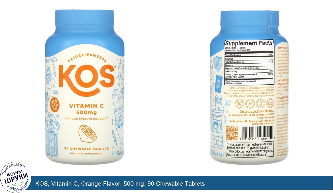 Друзья, если у вас есть отзыв/дополнение/комментарий/вопрос относительно KOS, Vitamin C, Orange Flavor, 500 mg, 90 Chewable Tablets - напишите его ответом в эту тему (это будет полезно всему сообществу в целом и вам в отдельности).