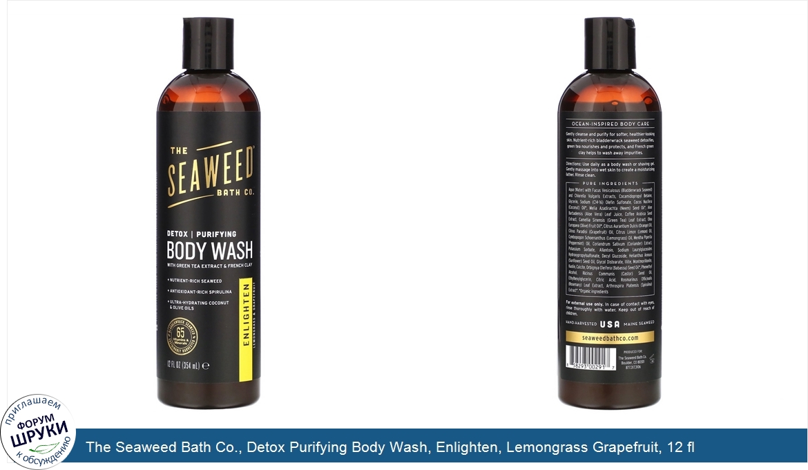 Друзья, если у вас есть отзыв/дополнение/комментарий/вопрос относительно The Seaweed Bath Co., Detox Purifying Body Wash, Enlighten, Lemongrass Grapefruit, 12 fl oz (354 ml) - напишите его ответом в эту тему (это будет полезно всему сообществу в целом и вам в отдельности).