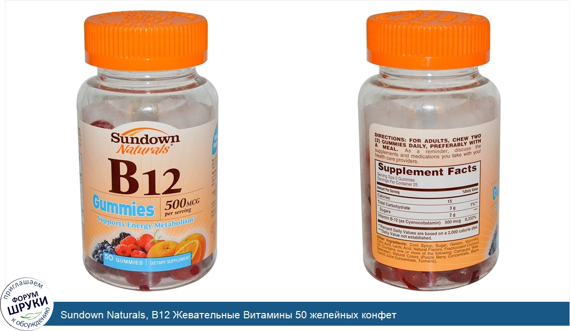 Друзья, если у вас есть отзыв/дополнение/комментарий/вопрос относительно Sundown Naturals, В12 Жевательные Витамины 50 желейных конфет - напишите его ответом в эту тему (это будет полезно всему сообществу в целом и вам в отдельности).