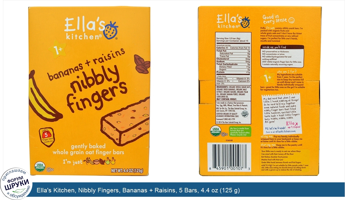 Друзья, если у вас есть отзыв/дополнение/комментарий/вопрос относительно Ella's Kitchen, Nibbly Fingers, Bananas + Raisins, 5 Bars, 4.4 oz (125 g) - напишите его ответом в эту тему (это будет полезно всему сообществу в целом и вам в отдельности).