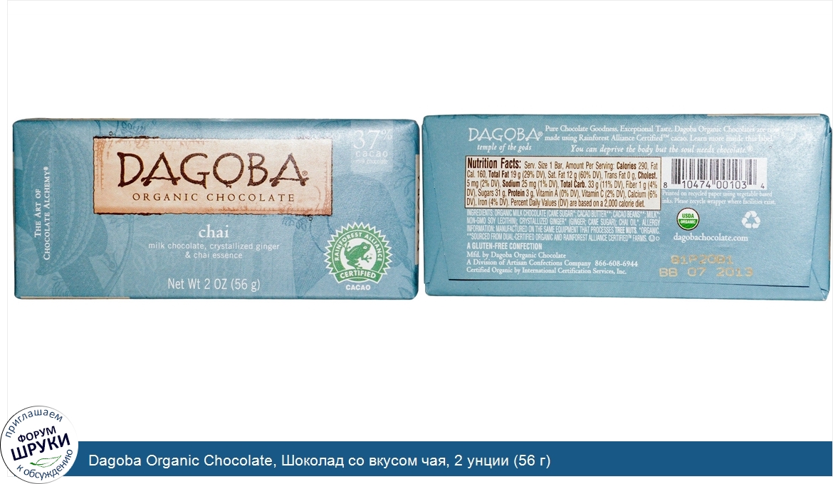 Друзья, если у вас есть отзыв/дополнение/комментарий/вопрос относительно Dagoba Organic Chocolate, Шоколад со вкусом чая, 2 унции (56 г) - напишите его ответом в эту тему (это будет полезно всему сообществу в целом и вам в отдельности).
