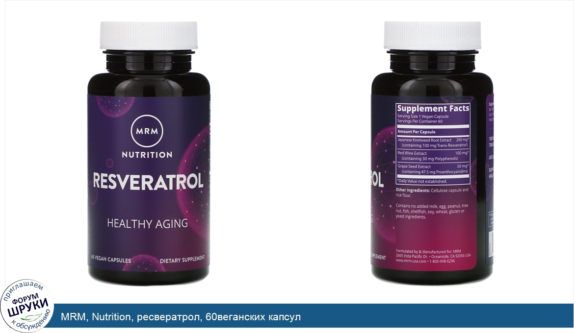 Друзья, если у вас есть отзыв/дополнение/комментарий/вопрос относительно MRM, Nutrition, ресвератрол, 60веганских капсул - напишите его ответом в эту тему (это будет полезно всему сообществу в целом и вам в отдельности).