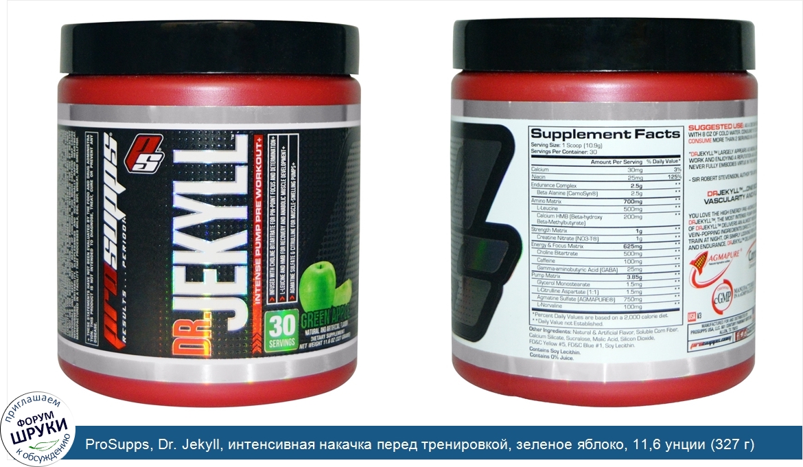 Друзья, если у вас есть отзыв/дополнение/комментарий/вопрос относительно ProSupps, Dr. Jekyll, интенсивная накачка перед тренировкой, зеленое яблоко, 11,6 унции (327 г) - напишите его ответом в эту тему (это будет полезно всему сообществу в целом и вам в отдельности).