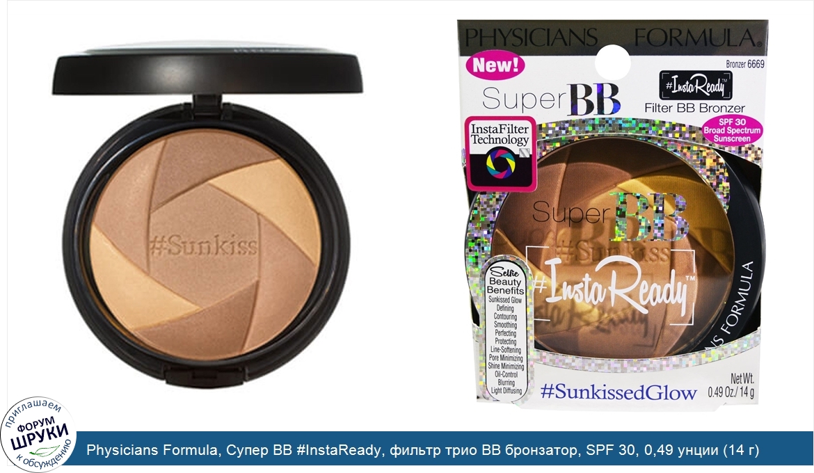 Physicians Formula, Супер BB #InstaReady, фильтр трио BB бронзатор, SPF 30, 0,49 унции (14 г)