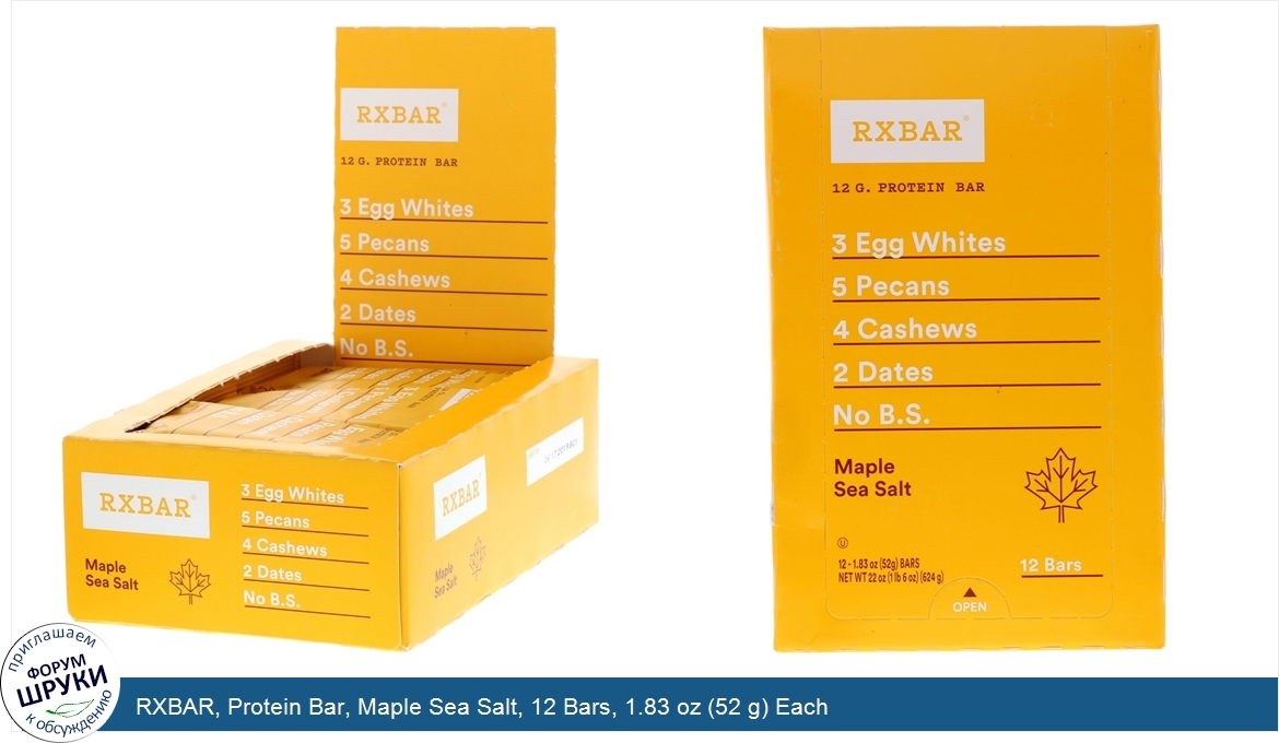 RXBAR, Protein Bar, Maple Sea Salt, 12 Bars, 1.83 oz (52 g) Each