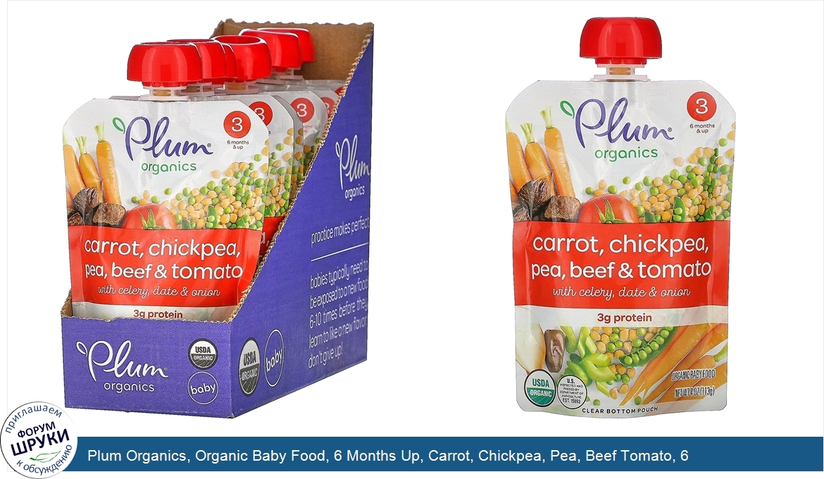 Друзья, если у вас есть отзыв/дополнение/комментарий/вопрос относительно Plum Organics, Organic Baby Food, 6 Months Up, Carrot, Chickpea, Pea, Beef Tomato, 6 Pouches,4 oz (113 g) Each - напишите его ответом в эту тему (это будет полезно всему сообществу в целом и вам в отдельности).