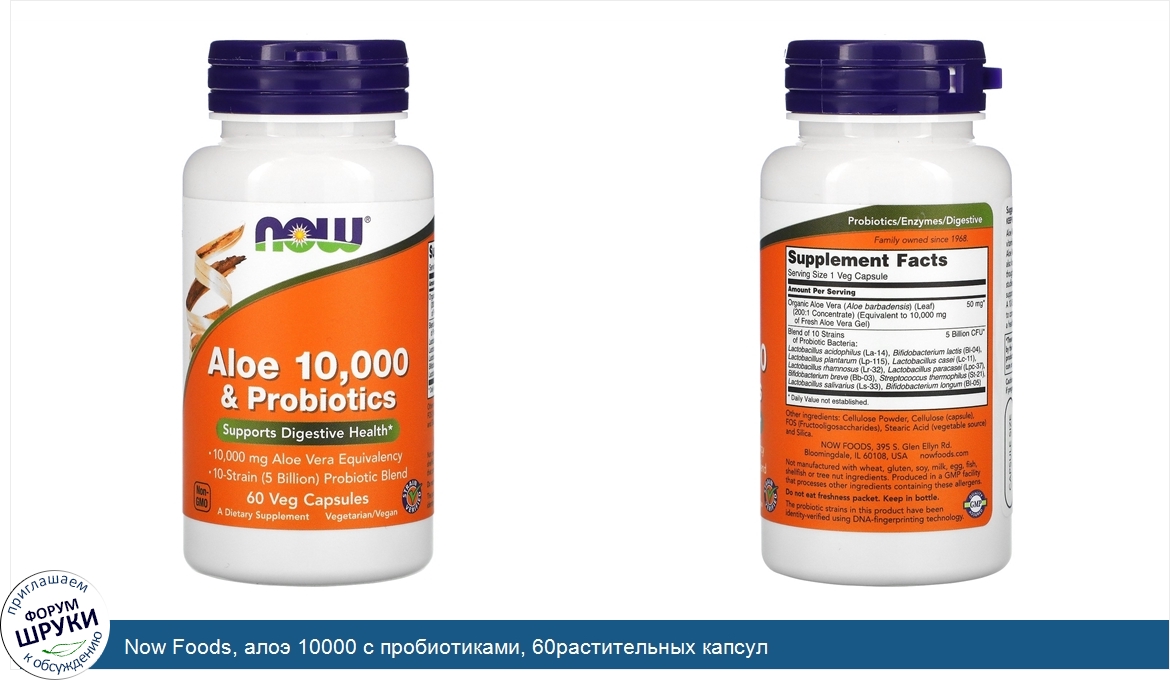 Now Foods, алоэ 10000 с пробиотиками, 60растительных капсул