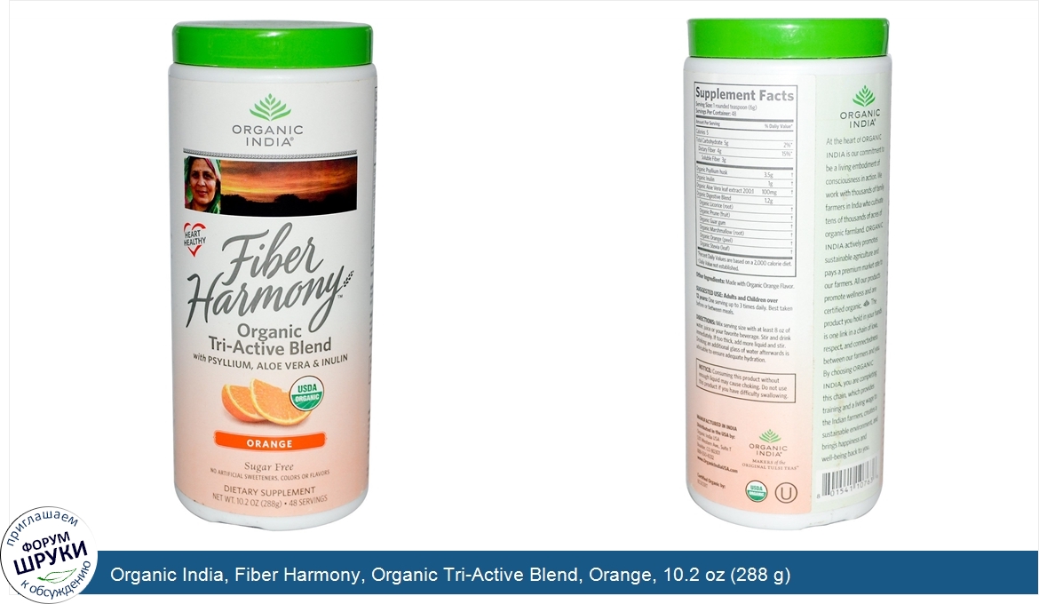 ru Organic India, Fiber Harmony, Organic Tri-Active Blend, Orange, 10.2 oz (288 g)