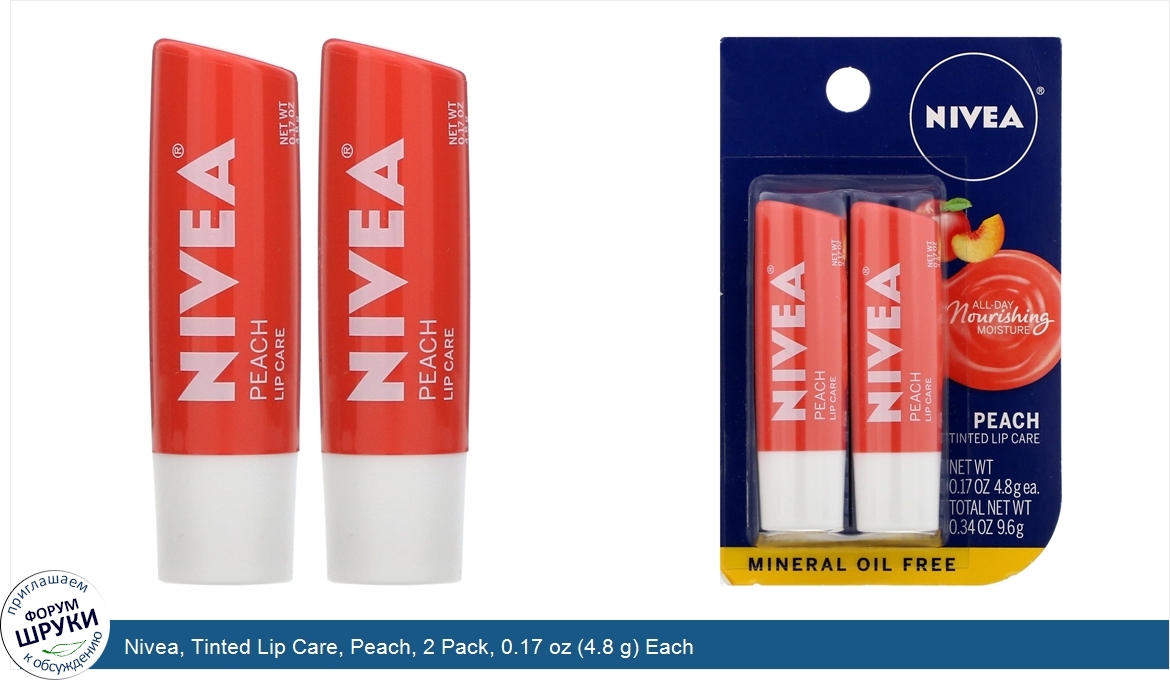 Друзья, если у вас есть отзыв/дополнение/комментарий/вопрос относительно Nivea, Tinted Lip Care, Peach, 2 Pack, 0.17 oz (4.8 g) Each - напишите его ответом в эту тему (это будет полезно всему сообществу в целом и вам в отдельности).