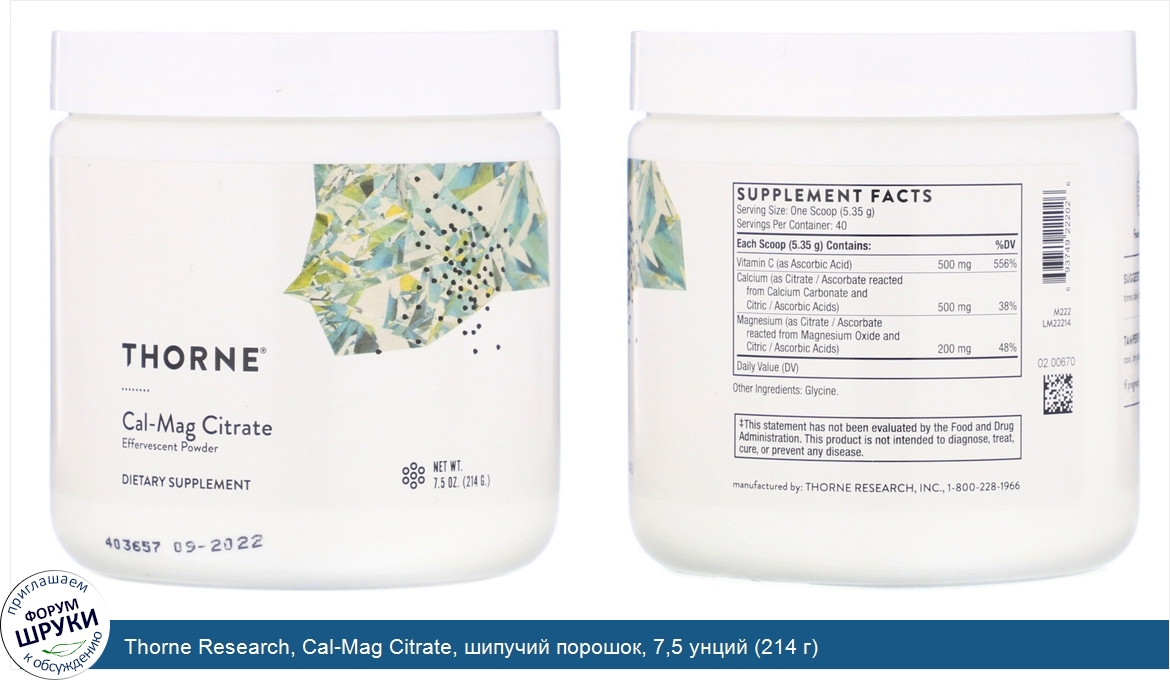 Друзья, если у вас есть отзыв/дополнение/комментарий/вопрос относительно Thorne Research, Cal-Mag Citrate, шипучий порошок, 7,5 унций (214 г) - напишите его ответом в эту тему (это будет полезно всему сообществу в целом и вам в отдельности).