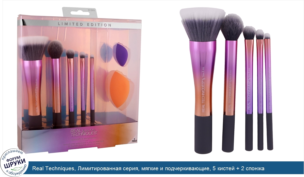 Друзья, если у вас есть отзыв/дополнение/комментарий/вопрос относительно Real Techniques, Лимитированная серия, мягкие и подчеркивающие, 5 кистей + 2 спонжа - напишите его ответом в эту тему (это будет полезно всему сообществу в целом и вам в отдельности).
